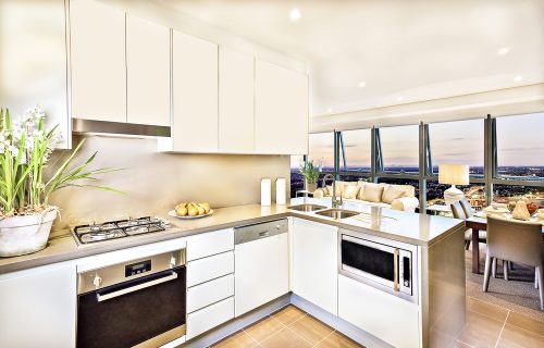 이는 공간들을 부분적으로 구분하는 근사한 방법이다. 부엌에서 유리창을 통해 식당을 내다볼 수 있을 것이다. 당신이 원한다면, 부엌을 L자 형태로 둘러쌀 수도 있다. 아일랜드 가구를 사용하고 있다면, 그 가구의 전면 끝에 내리닫이 창을 다는 방법도 있다. 그 창문을 통해 식당을 직접 바라볼 수 있을 것이다.